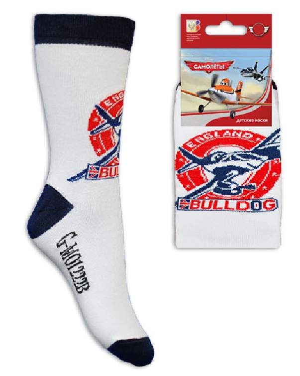 Детский носок, с изображением самолета на паголенке с надписью BULLDOG ENGLAND
