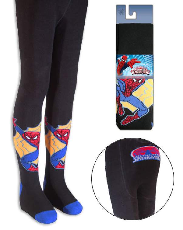 Колготки детские, плюш, Человек Паук на фоне желтой паутины, с надписью