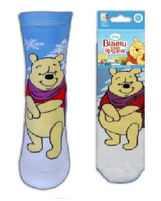 Детский плюшевый носок, изображение Винни Пуха со снежинками