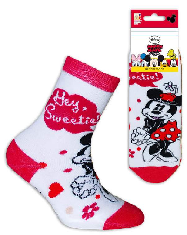Носки детские плюшевого переплетения. На носке изображение Минни в шапочке с цветком.