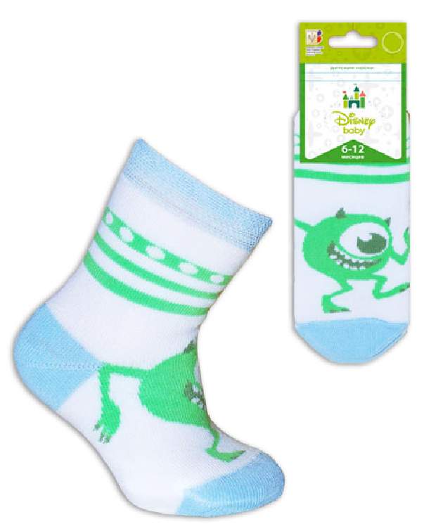 Носки детские плюшевого переплетения. Спереди изображение идушего Майка Вазовски