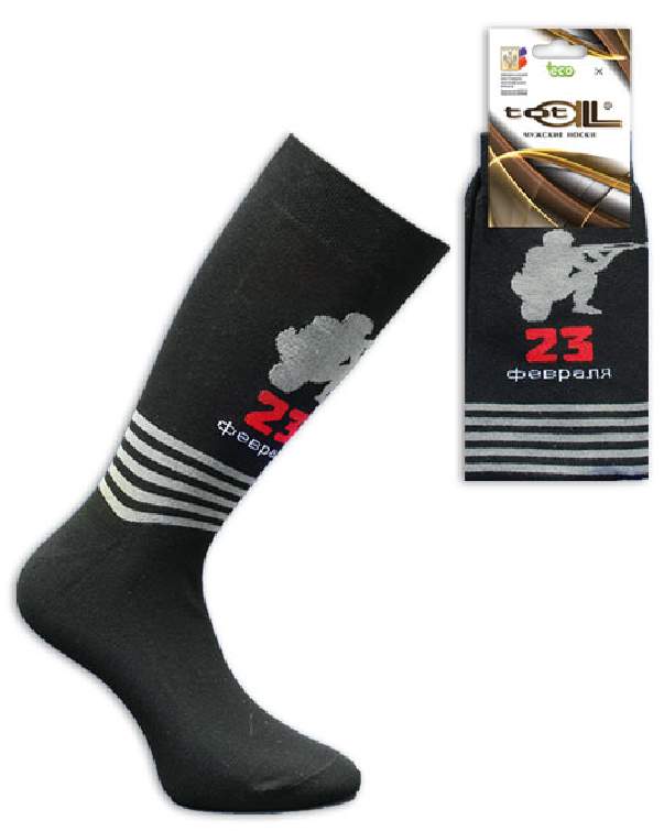 Мужской двухцвеиный носок.На паголенке компьютерный рисунок солдата и надпись "23 февраля"
