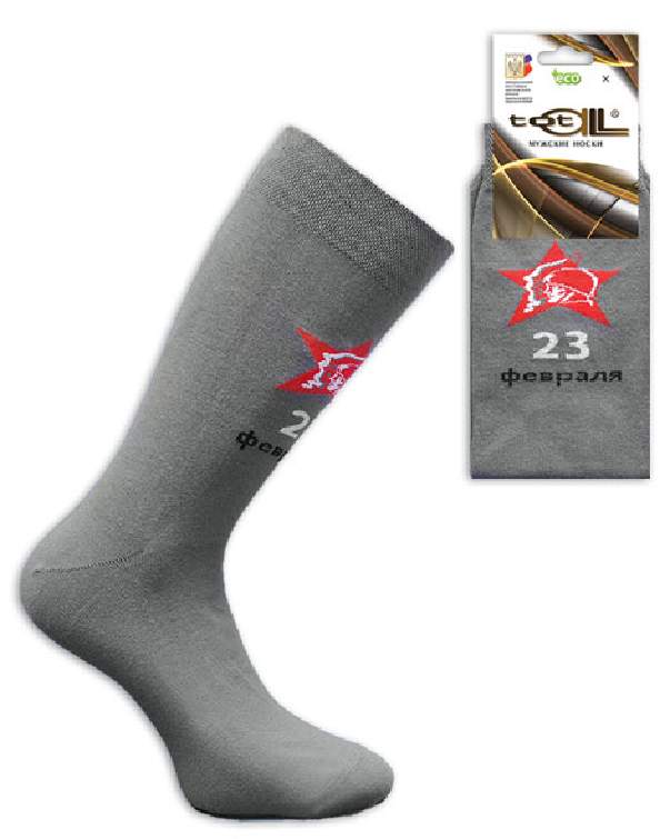 Мужской носок.На паголенке компьютерный рисунок звезды и надпись "23 февраля"