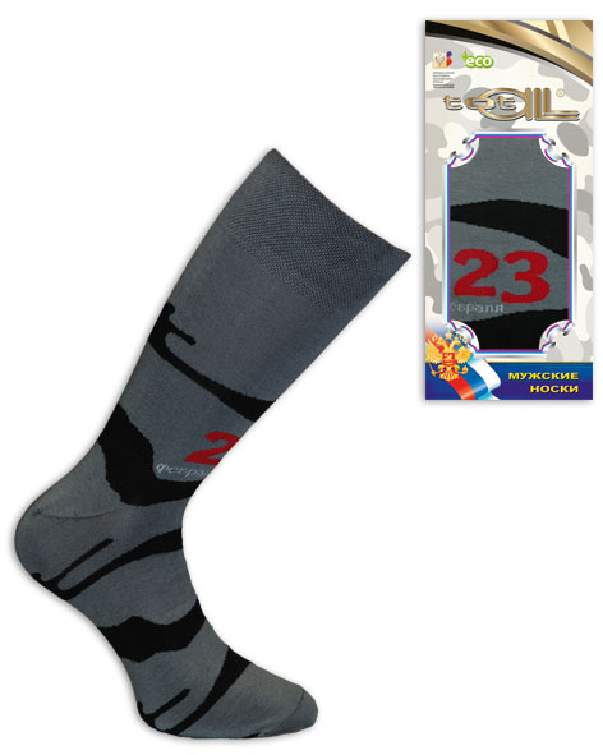 Носки "23 февраля", рисунок в виде щита со звездой, полосы по носку, индивидуальная упаковка