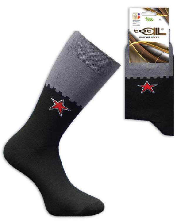 Мужской двухцвеиный носок.На паголенке компьютерный рисунок звезды