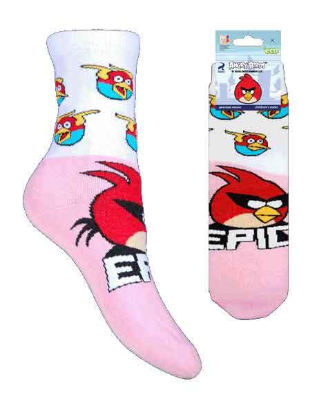 Детский носок. На следу спереди вывязана птичка надпись EPIC. На паголенке маленькие птички.