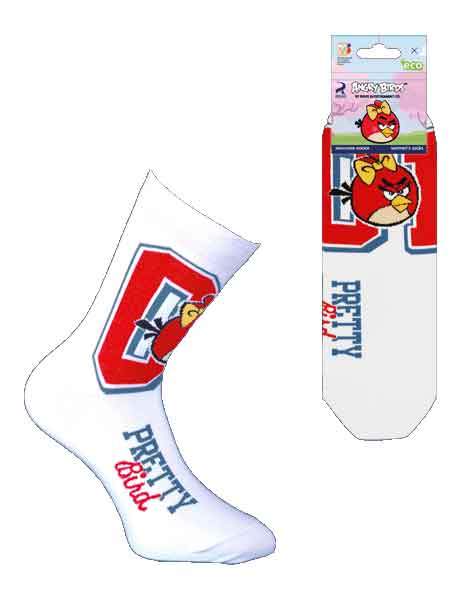 Женский носок, на паголенке на фоне 01 птичка, на паголенке надпись pretty bird.