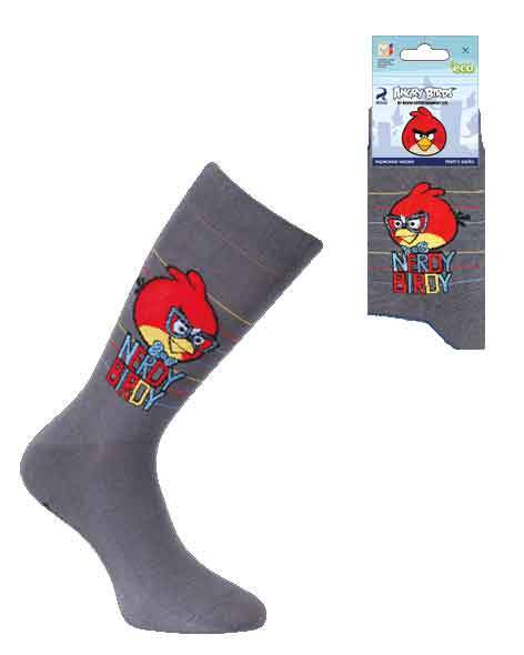 Мужской носок. На паголенке вывязана птичка в очках, вывязаны полоски.