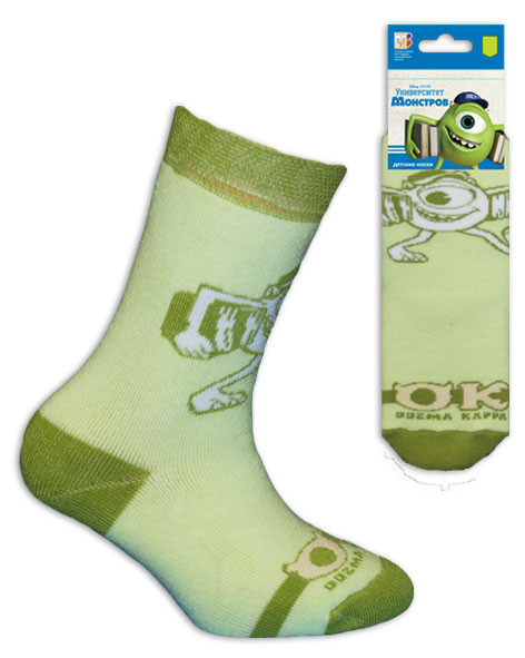 Носки детские плюшевого переплетения. Изображение Майк Вазовски с книгами , на следу надпись ОК OOZMA KAPPA.