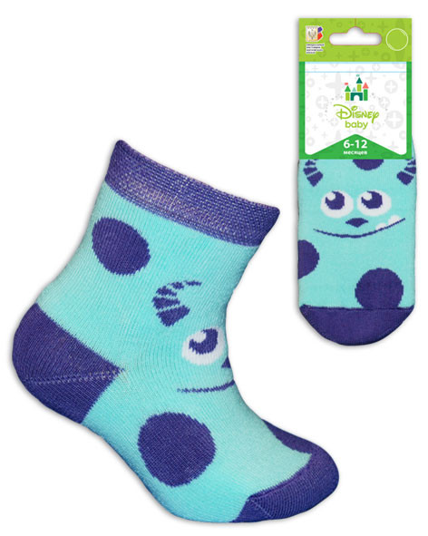 Носки детские плюшевого переплетения. Контурное изображение Салли в горошек.