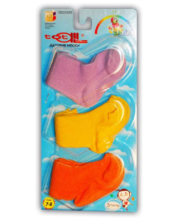 Носки детские. Широкая цветовая гамма носков для детей "грудничкового возраста", гладь, блистер по 3 пары