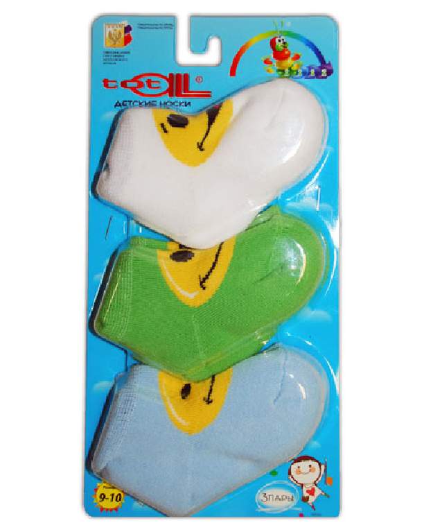 Носки детские, грудничковые, плюш, спереди вывязан смайлик, блистер по 3 пары