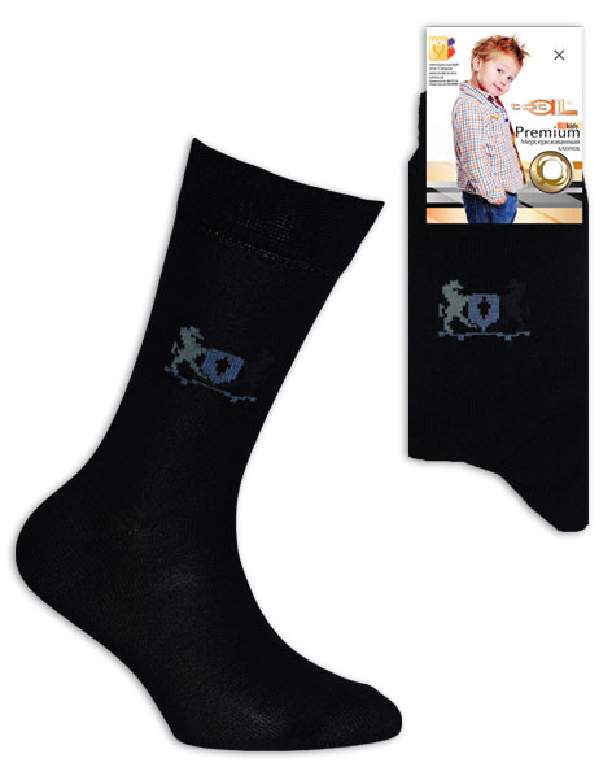 Детский носок для мальчиков. Гладь, рисунок на паголенке в виде герба льва
