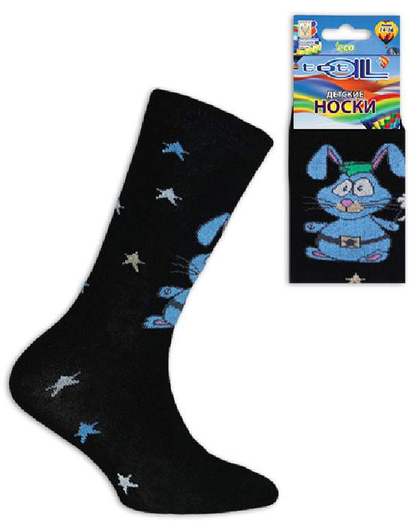 Носки детские, гладь. По всему носку вывязаны звезды, на паголенке зайчик