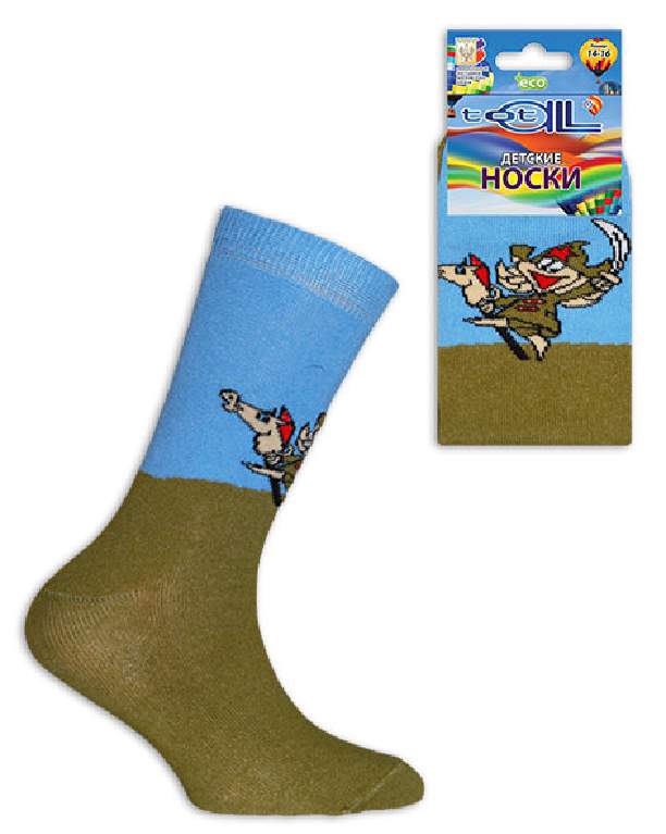 Носки двухцветные, гладь. На паголенке рисунок солдата